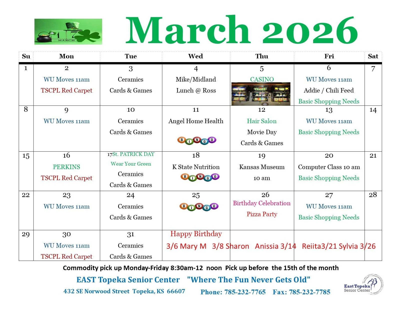 East topeka senior center programs are underwritten by the following entities